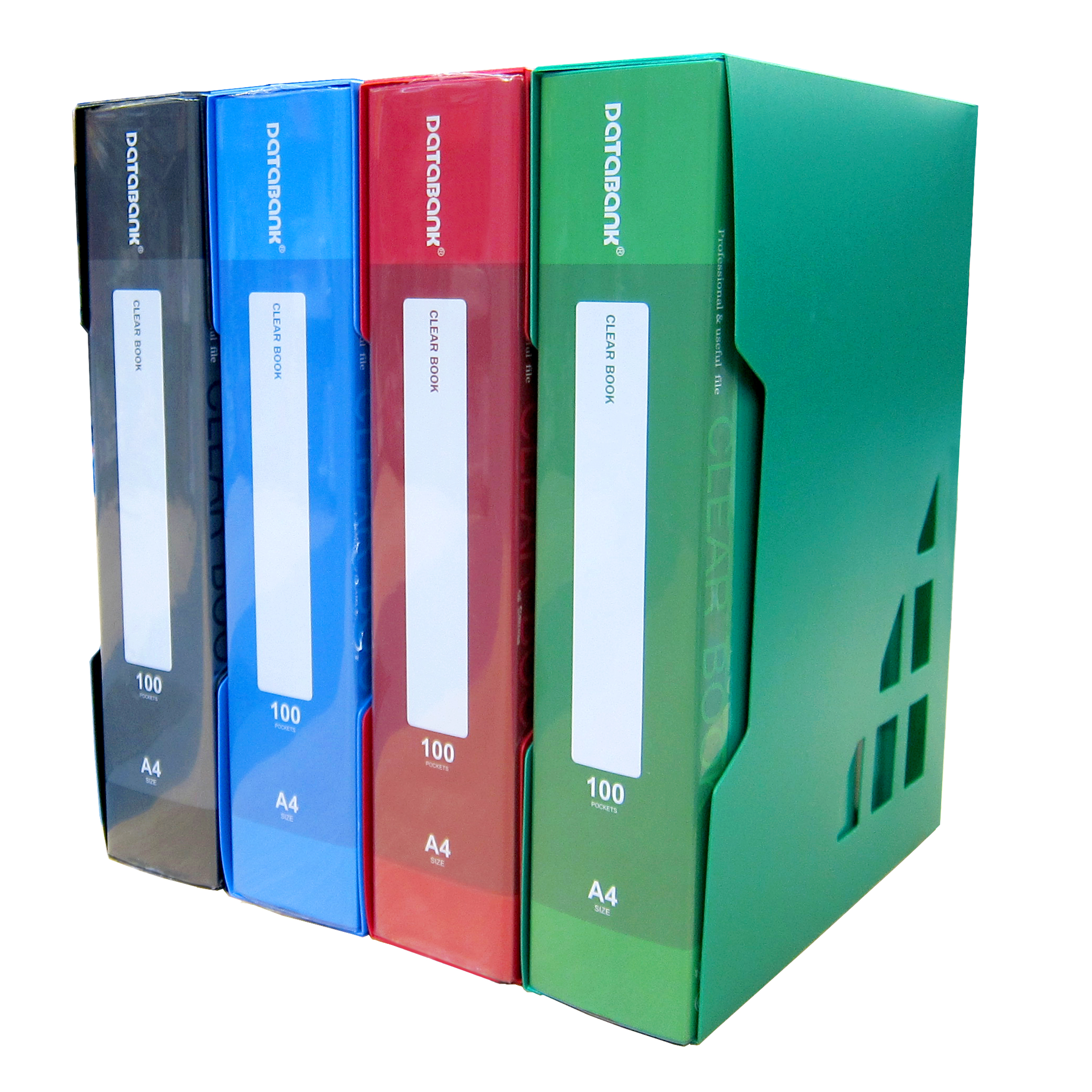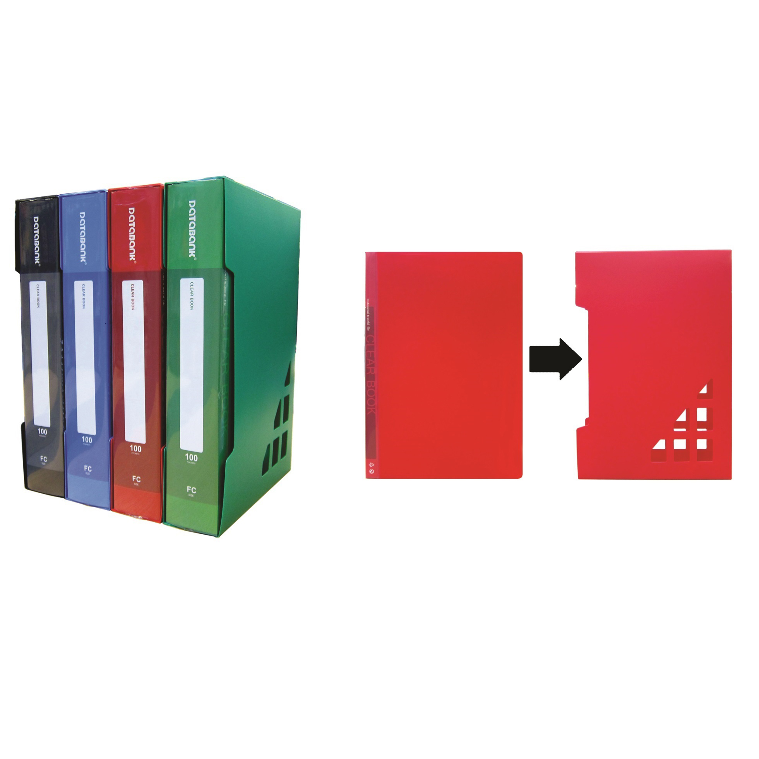 This DATABANK Clear Book is a versatile filing solution for A4, Letter, and FC documents. It comes with 100 pockets and a durable plastic case for added protection.
