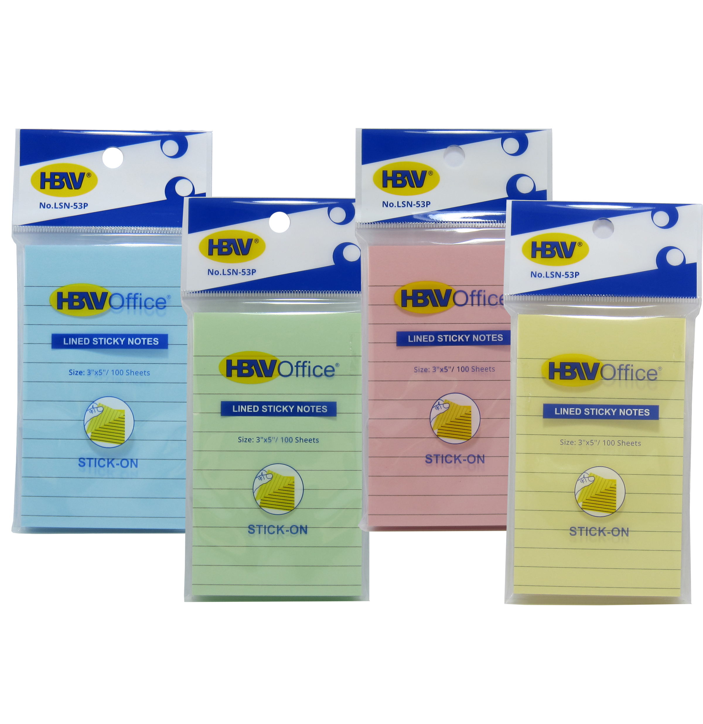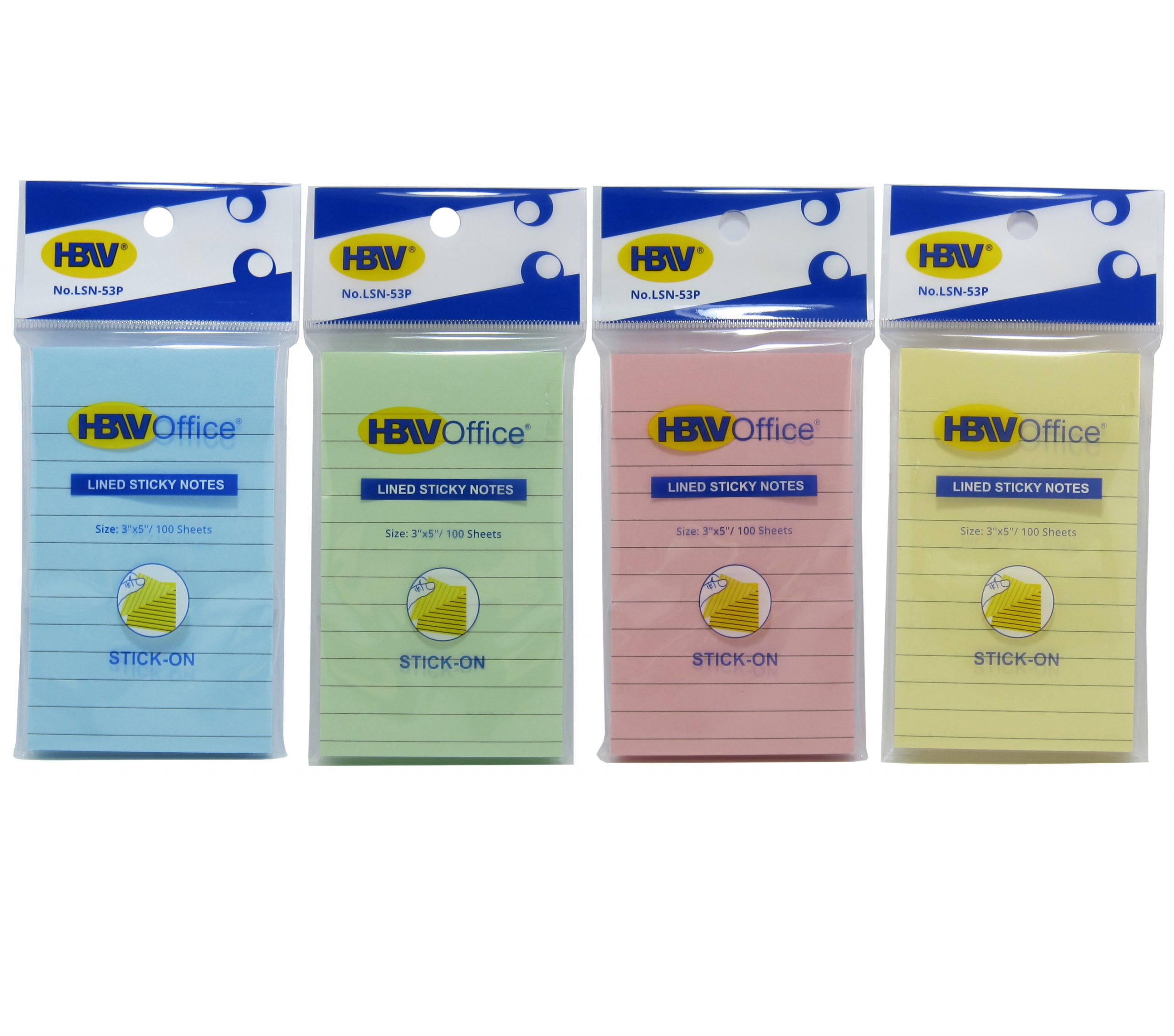 HBWOffice Lined Sticky Notes come in a compact 3×5 inches size, perfect for quick notes. Each pack contains 100 sheets, ideal for everyday use. Available in four vibrant colors: Pink, Blue, Green, and Yellow. These sticky notes are designed for easy stick-on application, ensuring convenience and organization.